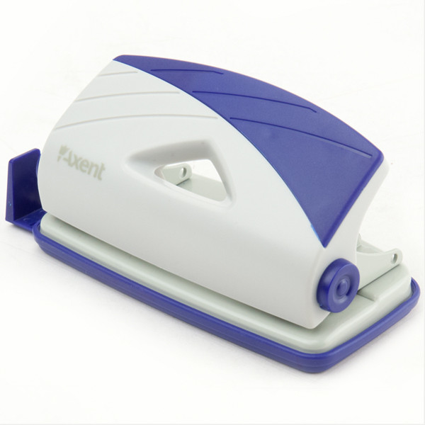 Діркопробивач Axent Duoton 3710-A. Корпус виготовлений із якісного ударостійкого ABS-пластику двох кольорів. Усі основні та робочі механізми — металеві. Пробивна потужність до 10 аркушів. Діаметр отвору невеликий, лише 6 мм, відстань між пробитими отворами 80 мм. Для зручності діркокол обладнаний висувною обмежувальною лінійкою з точною шкалою форматів паперу. Знімний резервуар для конфеті. Прогумована підошва, яка запобігає ковзанню дірокола поверхнею. Корпус сіро-синього кольору. Ліцензія/серія: Duoton.Матеріал корпусу: пластик.Квіт: сіро-синій.Мощість, листів: 10.