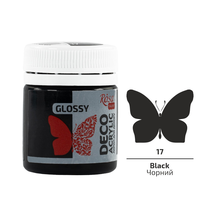 Акрил для декору чорний глянсовий 20 мл Rosa Talent, 21017