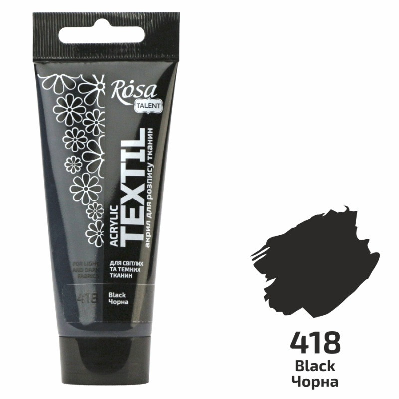 Фарби для тканин ROSA TALENT – високопігментовані акрилові фарби на водній основі призначені для розпису світлих та темних тканин різного складу, в тому числі шкіри і замші. Основні характеристики: - на водній основі; - високопігментовані; - якісні барвники забезпечують яскравість та стійкість кольорів; - високопокривні; - ідеально підходять для розпису натуральних та синтетичних тканин; - забезпечують профарбовування волокон та надмірно не ущільнюють тканину; - фарби легко змішуються між собою, утворюючи нові відтінки. Рекомендації по застосуванню: ретельно перемішайте фарбу перед нанесенням;наносьте фарбу на суху та чисту тканину;при декоруванні готового виробу покладіть між шарами тканини плівку (чи інший водонепроникний матеріал) для запобігання проходження фарби;для розчинення фарб ROSA TALENT використовуйте воду або розчинник для фарб по тканині;час повного висихання – 48год. Після повного висихання, зафіксуйте малюнок праскою без пари, при t 30-40 С, через папір або бавовняну тканину. Час прасування однієї ділянки від 5хв, залежно від типу тканину. Малюнки на речах, які не підлягають прасуванню, можна закріпити у духовій шафі при t 120 С протягом 20хв.Повна фіксація, без прасування та прогрівання, відбувається через 48 год. Прати виріб можна не раніше ніж через 48 годин.Рекомендуємо ручне прання або машинне, в делікатному режимі м'якими пральними засобами.Температура води не повинна перевищувати 40 С.